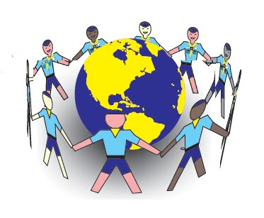 grande fila indiana, acompanhada de carro de som com músicas escoteiras.